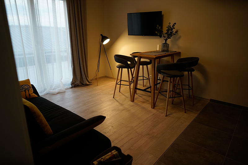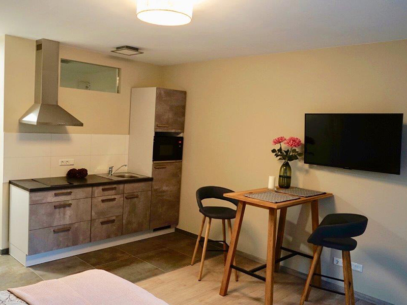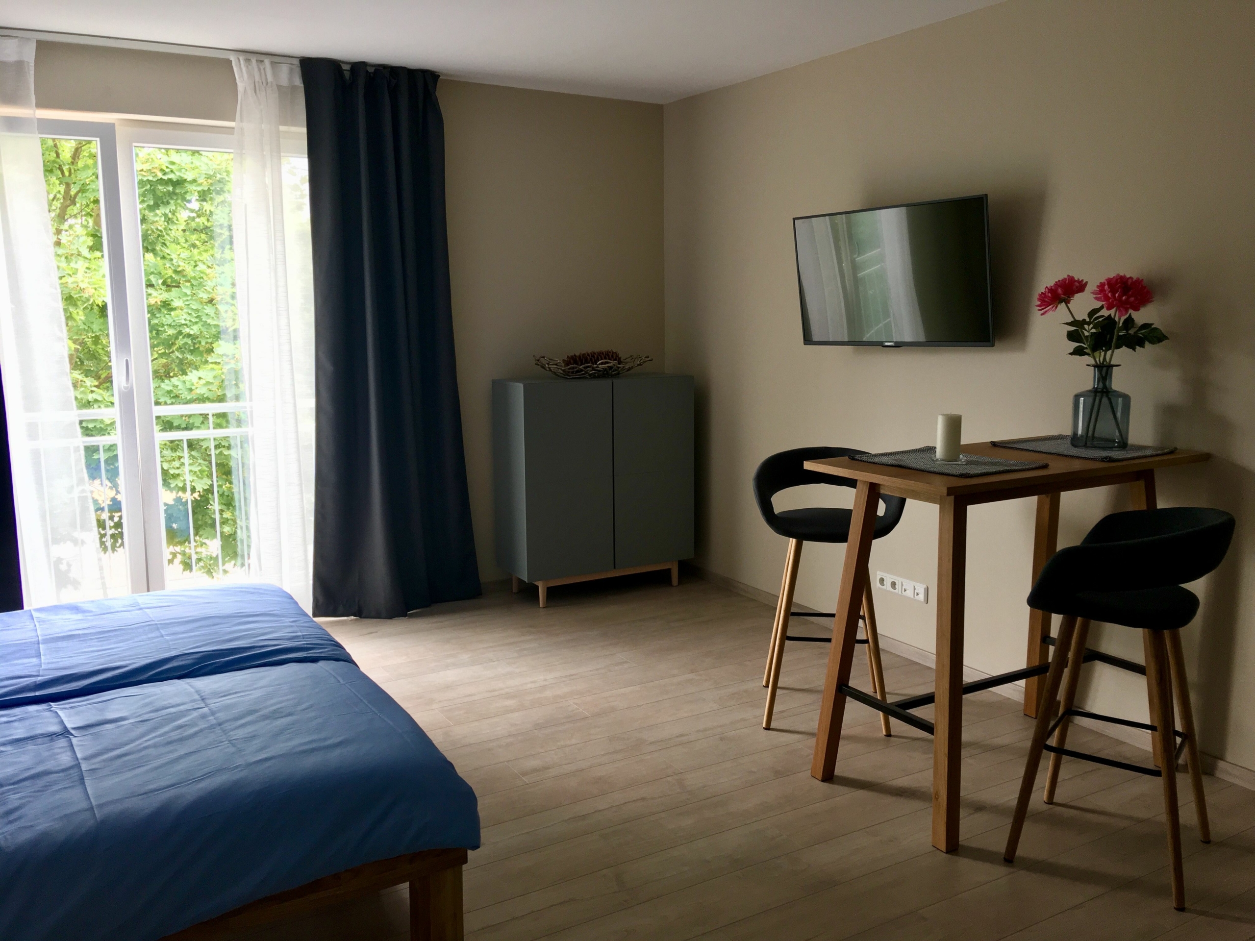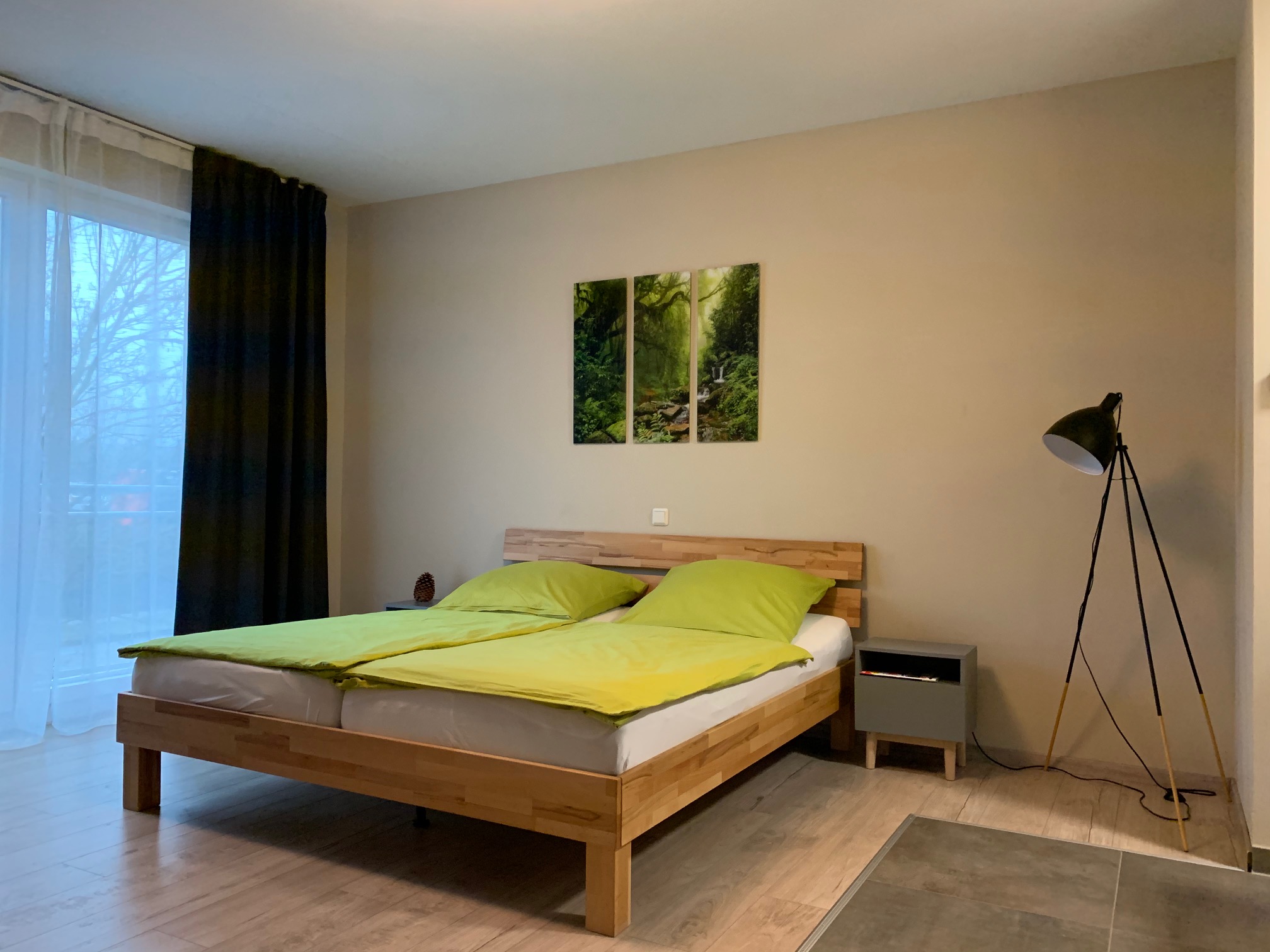 Wir bieten die Möglichkeit 1-8 Personen in unseren 3 Appartements unterzubringen. Im Appartements 1, einem 2-Zimmer-Appartement mit Einbauküche und Bad können 4 Personen schlafen. Das Appartement ist 37 m² groß. In einem Schlafzimmer ist ein großes Doppelbett 200x180cm, im zweiten Schlafzimmer ist ein Schlafsofa für 2 Personen. Die Appartements 2 und 3 sind 1-Zimmer-Appartements, ebenfalls mit einer Einbauküche und einem Bad. Dort können jeweils 2 Personen untergebracht werden. Alle Apartements sind im 1. OG gelegen. Dieses erreicht Ihr über eine Treppe oder den Fahrstuhl.